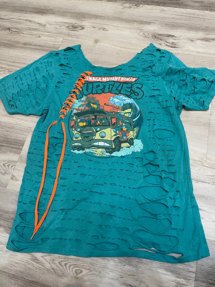 X-Large ninja orange off shoulder lace destroyed *worn 3times